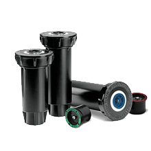 - หัวป๊อปอัพ (Pop-up Sprinklers) : ซ่อนอยู่ใต้ดินเมื่อไม่ใช้งาน โผล่ขึ้นมาเมื่อเปิดน้ำ นิยมใช้ในสวนสนามหญ้า